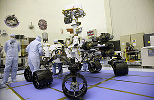 11月,美國宇航局的“好奇”號火星車在卡納維拉爾角發(fā)射升空,預(yù)計于2012年8月6日抵達火星。這輛火星車的體積與一輛SUV相當(dāng),是迄今為止派往火星的體積最大且性能最高的火星車。穿過火星大氣層過程中,“好奇”號將借助減速傘和空氣阻力減速,最后利用懸浮的“太空起重機”的繩索降落到火星表面。“好奇”號至少要在火星上跋涉兩年,執(zhí)行一系列探索任務(wù)。這輛火星車將上演怎樣驚人的發(fā)現(xiàn),讓我們拭目以待。
