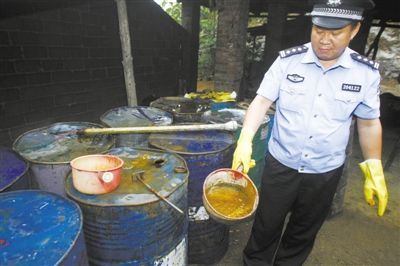 9月2日,廣西柳州警方查獲一個地溝油的工廠,現場繳獲成品地溝油約4噸。張存立 攝