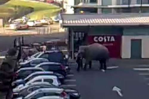 中新網訊 日前,愛爾蘭一家馬戲團的一頭大象被人發現在市區游蕩,它橫沖直撞地經過一家咖啡店,令店內的顧客受到驚嚇。