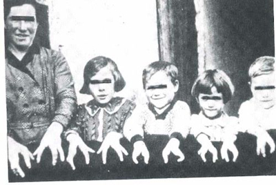 人們一度認為皇室成員的血管里流淌著藍色血液,但醫學研究證明他們和我們一樣,血液也是紅色的。不過,如果你患有先天性高鐵血紅蛋白血癥,你的血液便會因缺少一種酶變成褐色。除了容易疲勞、運動耐力差和出現其他癥狀外,高鐵血紅蛋白癥還會導致患者的皮膚變成藍色,至少高加索患者如此。照片展示了美國肯塔基州的福格特家族,很多成員都患有這種遺傳病,被稱之為“肯塔基的藍人”。