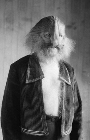 多毛癥俗稱“狼人綜合癥”,患者從面部到腳趾的整個身體都被濃密的毛發覆蓋,只有手掌等少數部位不受影響。有關多毛癥的最早記錄出現在17世紀。除了因基因變異先天患上多毛癥外,也會因為藥物產生的副作用后天患上這種疾病。此外,這種疾病也會伴隨癌癥和其他疾病出現。歷史上很多最著名的串演演員都患者多毛癥,例如照片中的“狗臉人”。