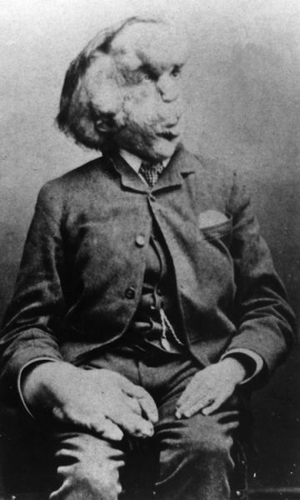 普洛提斯綜合癥是一種非常罕見的疾病,目前仍活在世上的患者只有120人。根據最近的研究發現,這種疾病由一個特殊基因發生變異所致,能夠導致身體的很多組織過度生長,例如皮膚、肌肉、血管和骨骼。通常情況下,普洛提斯綜合癥在出生時不會表現出任何癥狀,隨著年齡增長,患者身上開始出現不對稱的瘤和組織增生癥狀,導致外貌發生可怕變化。照片中的人名叫約瑟夫-麥里克,被形象地稱之為“象人”,除了可能患有普洛提斯綜合癥外,還可能患上其他疾病。麥里克的經歷告訴人們,畸形的身體里面經常存在著一個強壯而勇敢的靈魂。