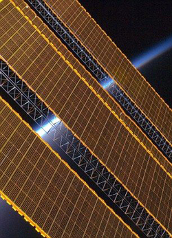 地球地平線和國際空間站的太陽能電池板陣列:這個戴森球將會采用相同原理,但是規模將會更加龐大