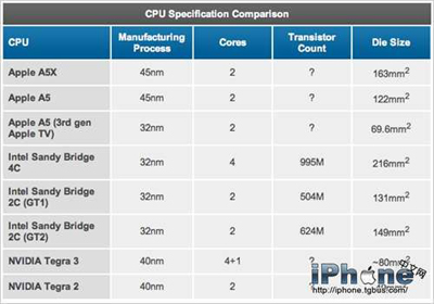 支持1080P的蘋果TV和售價為$399的iPad 2目前正在試水三星32nm制造工藝的High-K + Metal Gate處理器來整合到蘋果自己的A5處理器,并有望應用到iPhone5上的A系列處理器。未來蘋果有望通過整合三星的32nm技術來提供更加高效更加節能的處理器。我們期待在iPhone5上采用更優秀的A5架構“A6”芯片。