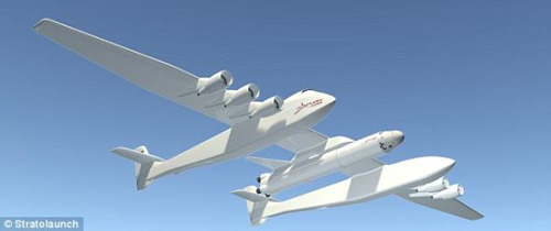 微軟巨頭保羅-艾倫創(chuàng)建的平流層發(fā)射系統(tǒng)公司去年12月在西雅圖公開(kāi)了它的太空飛機(jī)模型。這架飛機(jī)的翼展比足球場(chǎng)還長(zhǎng)