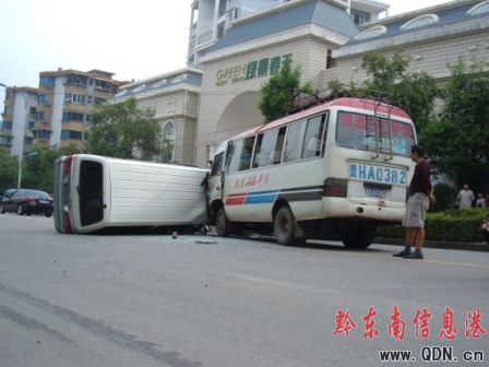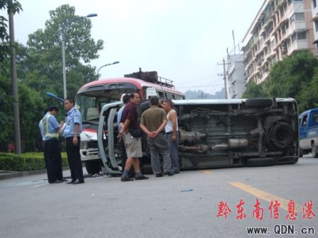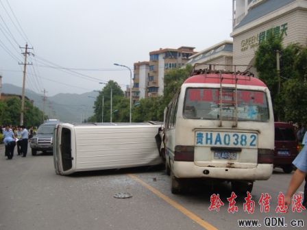 本港訊(記者 潘光銀)8月7日上午,凱里市清江路發(fā)生三車連環(huán)相撞事故,造成一車側(cè)翻,2人受傷被困。據(jù)悉,事發(fā)時一輛越野車從某小區(qū)駛出,與火車站方向駛來的一輛運鈔面包車追尾擦刮,緊接著從大閣山遂道方向開來的一輛中巴車又與運鈔車面包車發(fā)生撞擊,致面包車側(cè)翻。