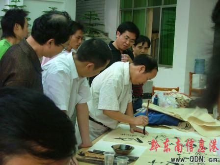 當天下午,州書法協會主席團楊正豪、楊光融以及潘星金等一行到該院進行現場書法作品創作示范,為該院獻上近100副書法作品,并應邀為廣大書法愛好者贈送大量勵志墨跡。
