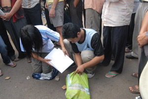 記者趕到現場時,“兄妹倆”跪在地上,低著頭,很難看清長相。他們前面擺放著的紙上寫著,其母親在三亞打工,突患重病住進醫院,他們從貴州農村來,沒有錢給母親看病,兄妹倆出來乞討,希望好心人幫助等,地上還有其母親的病歷和一個“華中師范大學學生證”。