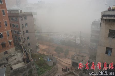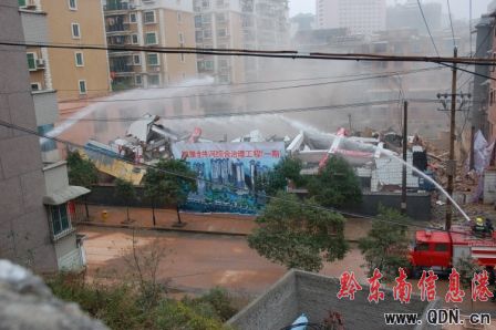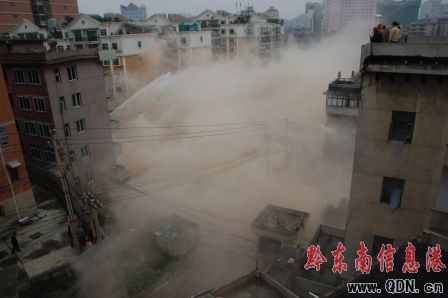 圖:第一次爆破中的凱里市國土局辦公樓及宿舍樓
