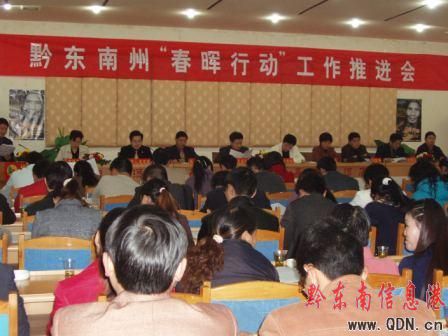 本港訊(梅艷) 2月8日上午9點,黔東南州“春暉行動”推進會在凱里市鑫龍大酒店九樓會議室召開。州委組織部副部長王崇松、團州委書記龍安躍、州直相關部門領導、各縣市團委書記及“春暉行動”重點鄉鎮團委書記等130余人參加了會議。