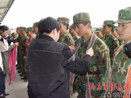 共青團黔東南州委書記龍安躍為解放軍敬獻“花帶”