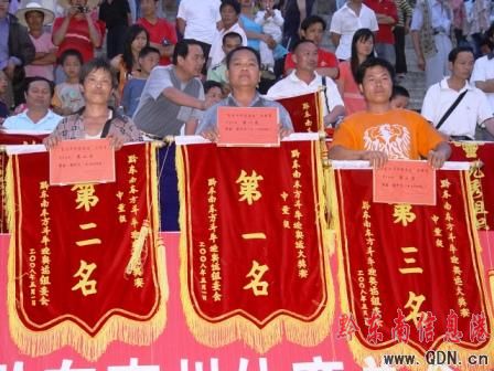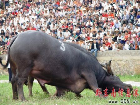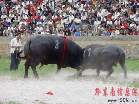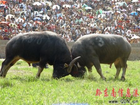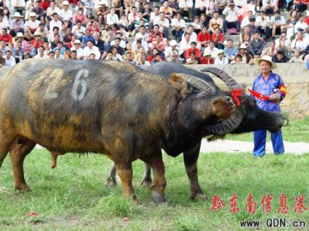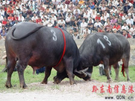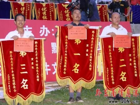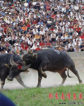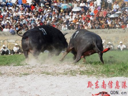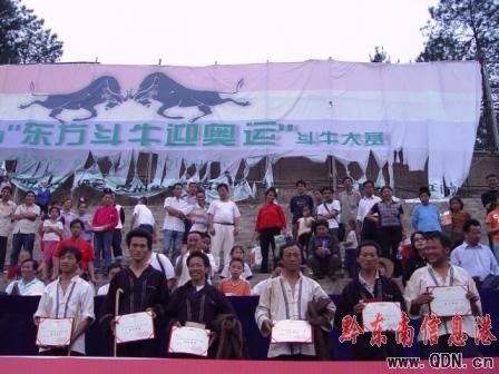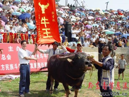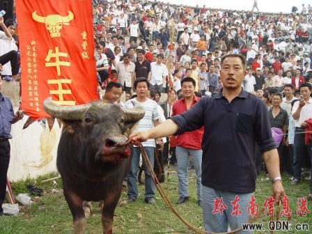 本港訊 (記者 楊文斌)烏云滾滾,天色已漸漸陰暗下去,暴雨即將來臨,時針指向18時30分,可斗牛場上依然鼓聲震天,掌聲如雷,數萬觀眾沒有一人提前離去。這是5月3日出現在“中國黔東南‘東方斗牛迎奧運’斗牛大賽”決賽場上的一幕,來自黔東南州境內的兩頭斗牛分別取得了大賽兩級第一名的好成績。