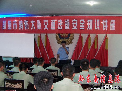 本港訊(特約記者 鄭旭軍)為加強開展機動車涉牌涉證違法行為集中整治、夏季事故預防、“迎國慶、保安全、促和諧”專項行動等工作。凱里市交警大隊深入消防部隊開展交通安全宣傳活動。