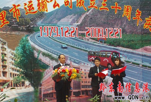 本港訊 (記者 廖強 攝影報道)12月21日早,凱里市運輸公司成立三十年慶典在博南客車站舉行,黔東南政協副主席、工商聯會長熊賜新以及州統戰部、交通局、工商部門等等100余家單位、公司代表紛紛到場祝賀。