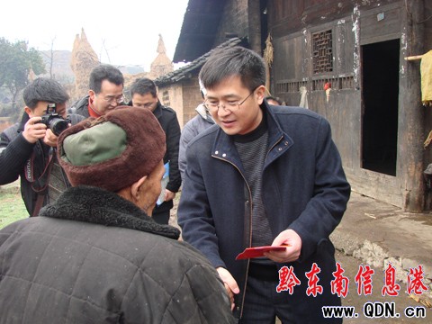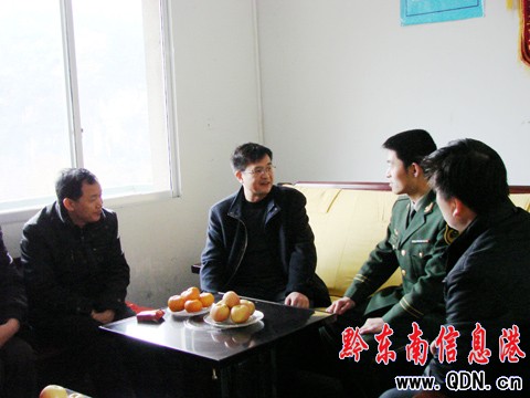 本港訊 (粟瓊 記者 楊驥)在春節即將來臨之際,2月3日,凱里市委副書記、市委深入學習實踐科學發展觀活動領導小組副組長周文鋒、市人大常委會副主任秦成帶領民政、計生等部門有關負責人分別深入灣水、龍場鎮農村慰問,把黨和政府的溫暖送到農村老黨員、復退軍人、老村干、特困戶、低保戶家中。