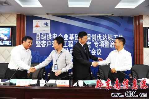 圖為該局局長許良柱(左二)、黨委書記徐書金(左三)與縣級供電企業(yè)黨政一把手簽署“軍令狀”