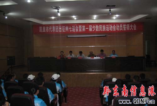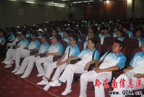 本港訊 (記者 廖強 攝影報道)7月18日早,黔東南州第七屆運動會暨第一屆少數民族運動會凱里代表隊在凱里市行政中心召開誓師大會,中共凱里市委副書記周文峰、市人大常委會副主任秦成、凱里市人民政府副市長毛健、市政協副主席鄧友軍等領導出席了會議。