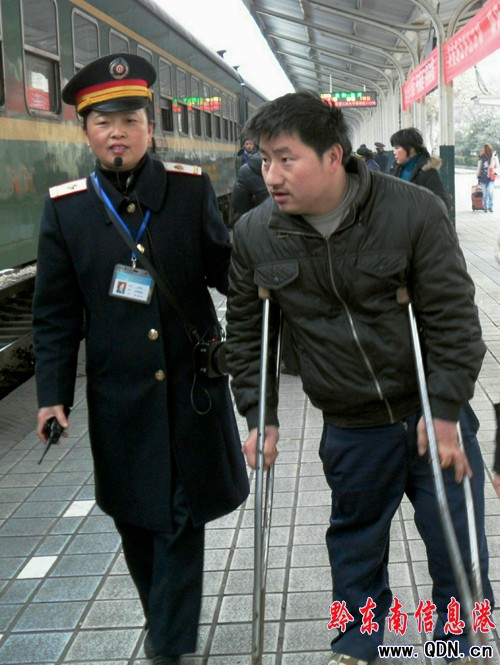 “三八”國際勞動婦女節(jié)即將來臨,凱里火車站52名女職工開展了我為重點旅客服務(wù)活動,在各自崗位開展了為困難旅客排憂解難等系列活動,自3月1日以來該站一共為87名重點旅客的需要提供各種服務(wù)。圖為近日,凱里火車站女子服務(wù)隊隊員攙扶著重點旅客進站上車。(姜澤鵬 攝)