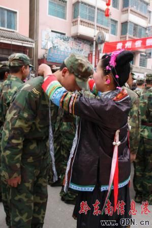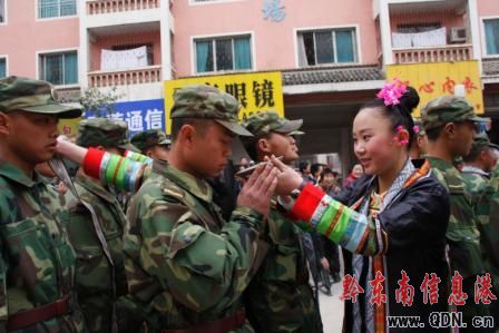 本港訊 (特約記者 姚瑤 記者 姜秀波) 熱情好客的侗族少女端起香甜的米酒敬給親人解放軍,并獻上侗族尊貴的“連心帶”。3月4日,圓滿完成了搶修電網任務的成都軍區某紅軍師高炮團官兵離開革命老區貴州省