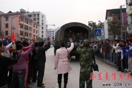 在歡送現場,老百姓把牛奶、水果、雞蛋塞進子弟兵的口袋,幾位老大娘感動著哭著歡送子弟兵歸隊。