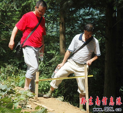今年7月份以來,黎平縣德化鄉(xiāng)培基村格里侗寨,由于受三板溪水庫蓄水和降雨的影響,這個侗寨的后背山的三條嶺發(fā)生了裂縫寬26厘米、長度為600米的山體裂縫。為了掌握山體下沉的動態(tài)數(shù)據(jù),黎平縣國土資源局副局長陳明贇率領(lǐng)鐘永易、楊秀科等三名技術(shù)人員,吃住在山上,他們冒著高溫酷暑,每天要不斷在山上來回,觀測動態(tài)數(shù)據(jù)8次。為了準(zhǔn)確地實測到山體的下滑數(shù)據(jù),他們?nèi)撕嫌嫞l(fā)明了地災(zāi)監(jiān)測標(biāo)桿尺,它的原理是:標(biāo)桿尺的上方固定一根直角橫桿尺,下方固定一根豎桿尺,與直角橫桿尺交點形成直角形。每當(dāng)山體出現(xiàn)下滑和裂縫的時候,相對應(yīng)的數(shù)據(jù)就會標(biāo)出裂縫和下移的相關(guān)數(shù)據(jù),可及時向上級部門報告情況。