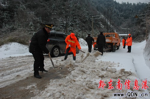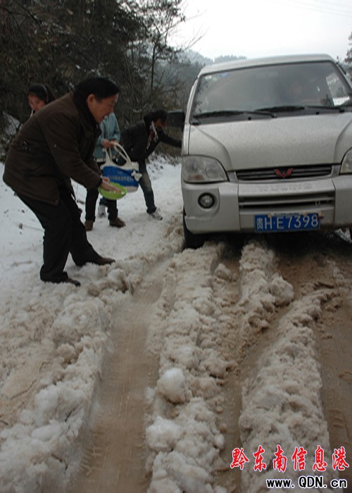 1月18日至20日,黎平縣迎來了隆冬時節的第三輪降雪天氣。在黎平縣政府副縣長肖金城的率領下,黎平縣交通系統的100多名員工,從早上6點開始,頂著風雪,在黎平至湖南靖州的出省公路線上,連續奮戰6個小時,除冰撒鹽,終于在12時,萬余名的農民工和大學生乘坐40輛客車,從湖南靖州縣安全駛入黎平縣。