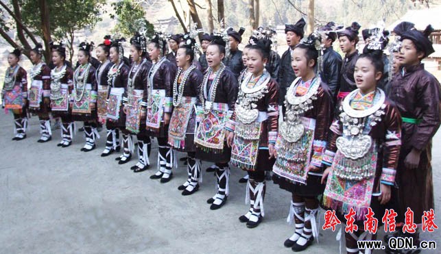 身著節(jié)日盛裝的侗族群眾演唱侗族大歌
