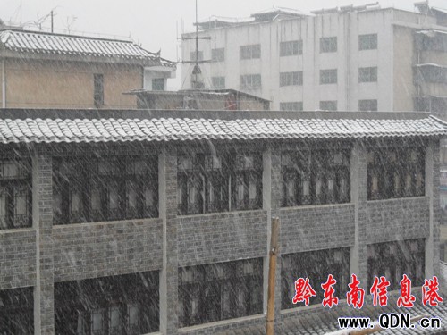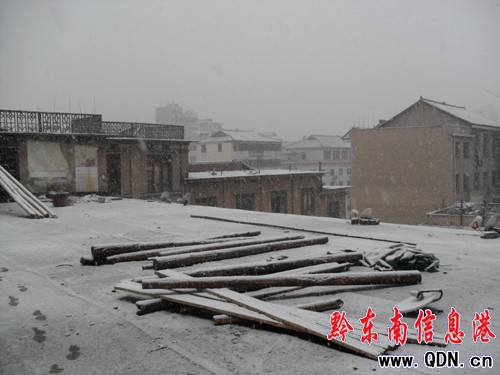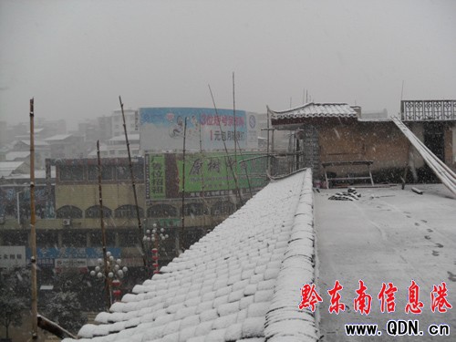 4日4時整,今年首場大雪終于光顧了黎平古城。一時間,大朵大朵的鵝毛雪漫天飛舞,古城上空已是一片白蒙蒙,不到一個時辰,屋頂、綠樹、大地已是銀裝素裹,地上已有10厘厚的積雪。“瑞雪兆豐年”,年初的首場大雪,預示著今年定有豐收的喜訊。大雪仍在繼續地下。(唐學章)