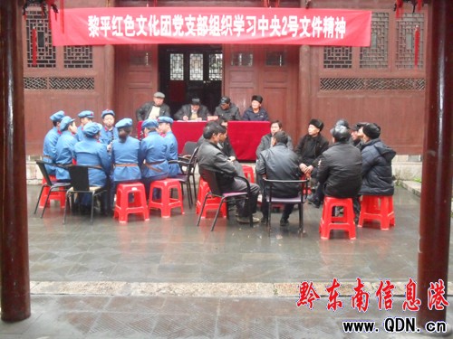為加強全體黨員的政策理論培養,提高政治思想水平,進一步搞好新形勢下的紅色文化挖掘和宣傳工作,為黎平紅色旅游開發作出新的貢獻,2012年2月5日下午,黎平縣紅色文化團黨支部組織全體黨員,認真學習中華人民共和國國務院頒布的《關于進一步促進工作經濟社會又好又快發展的若干意見》即國發[2010]2號文件。