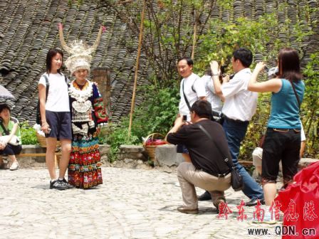 本港訊 (記者 黃桂花) 8月29日中午11時,“ 2006 北京網絡媒體紅色故土行——追尋長征足跡 穿行多彩貴州”大型采訪活動一行人走進黔東南郎德苗寨,感受苗寨風情。在追尋紅色故土的同時,還對當地村民及從江小黃村捐贈了電腦。