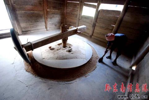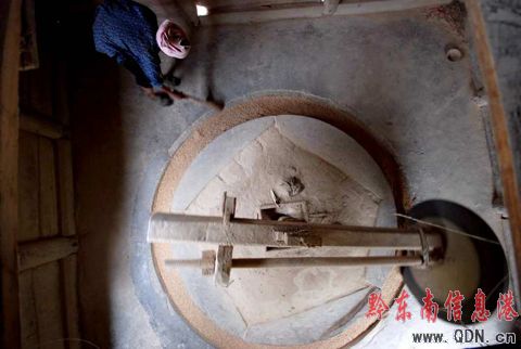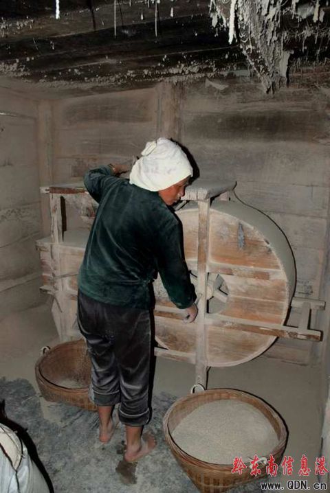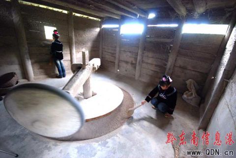雷公山腹地的雷山縣丹江鎮(zhèn)烏東苗寨有兩座古老水碾坊,為全寨苗族同胞加工大米、小米等糧食。雖然寨里有電力大米加工機(jī)器,但苗族同胞卻鐘情使用這兩座老水碾坊,他們認(rèn)為水碾坊加工加工出來(lái)的大米質(zhì)量、口感好,用糠喂豬豬喜歡吃,省電又環(huán)保。圖為8月10日,苗族同胞在雷山縣丹江鎮(zhèn)烏東苗寨水碾坊里加工大米。(陳沛亮攝 )