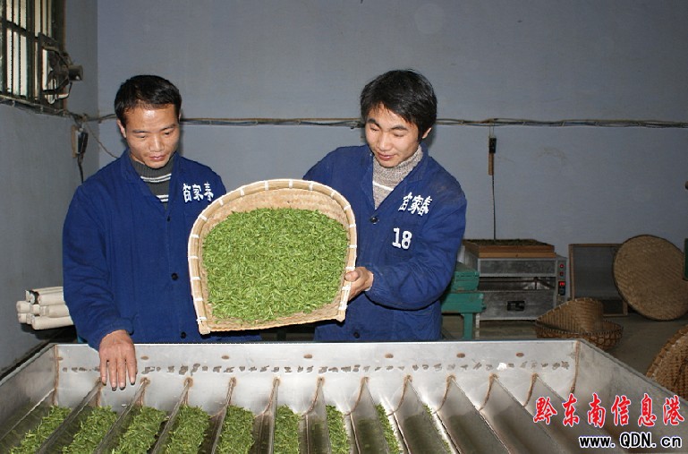 在苗家春茶加工廠,一股股清香的綠茶撲鼻而來,10多名工人正在緊張有序地篩選、轟烤、包裝新茶,銷售處的余敏手機響個停,都是來定購新茶!耙谎坎枰还1660元,而且貨很緊,一天只能銷售30多公斤,其他級別的茶每天銷售80公斤左右!庇嘈〗銟泛呛堑卣f。