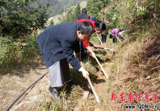 4月7日,桃江鄉巖寨村八組26戶105人飲水告急,需要到1400米的山溝引水,才能確保該組220人畜飲水。4月8日,作為幫扶單位的縣紀委監察機關及時協調得來1000多米的塑料水管,14名紀檢監察干部第一時間到達巖寨村,與村民一道頂烈日挖溝埋管,經過一個6個多小時的苦干,終于把甘甜的泉水引來。