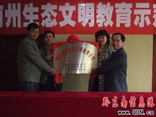 本港訊 (特約記者 張希才 攝影報道)2010年4月23日上午,黔東南州林業(yè)局、黔東南州教育局、共青團黔東南州委三家聯(lián)合為國家級雷公山森林公園授“黔東南州生態(tài)文明教育基地”牌儀式在雷公山雙慶國際大酒店二樓會議室舉行。州林業(yè)局、州教育局、團州委有關(guān)領(lǐng)導(dǎo)和雷公山保護區(qū)管理局、雷山縣政府、縣旅游公司、縣林業(yè)局、縣教育局、縣文體局等分管領(lǐng)導(dǎo)參加了授牌儀式。