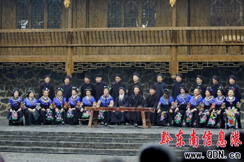 (苗族群眾在西江鎮千戶苗寨為游客表演苗族古歌)