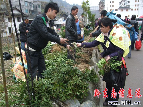 春節(jié)剛過,雷山縣各地農(nóng)民仍然忙著趕集,他們利用縣城的趕集日,到苗木市場購買“嫁接”果樹苗。