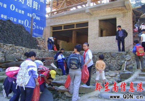 近日,為增強廣大中小學生熱愛家鄉、美化家園的意識,培養良好的衛生習慣,雷山縣各中小學校紛紛組織學生入村寨、街道、社區,開展了以“愛我家鄉·美化家園”為主題的道德實踐活動,為該縣創建省級文明縣城和全國衛生縣城營造了積極氛圍(圖為學生在村寨清理垃圾的場景)。(雷禮榮 趙華 攝)