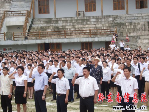 為紀念中國共產黨成立90周年,雷山縣委組織全體縣級黨員領導干部,縣直機關、企事業單位中的黨員代表,省、州駐雷山縣單位的黨員代表共1000余人,舉行“重溫入黨誓詞,永葆黨員本色”千名黨員集中宣誓暨“牢記入黨誓詞,永葆黨員本色,以優異成績迎接黨的十八大勝利召開”簽名活動。通過重溫入黨誓詞和簽名活動,促進廣大黨員特別是黨員領導干部,牢記入黨誓詞,增強黨員意識和為民意識。