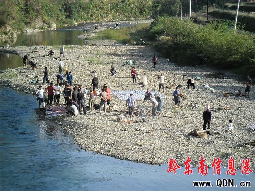 據悉,雷山苗族村落居住大都為木房吊腳樓,為了避免火災,驅逐火鬼災星。因此,每年糧食作物收完后,在秋冬季節,雷山縣許多苗寨都舉行各種防火和謹慎用火活動,其中最莊重的就是“掃寨”,苗語叫“蝦昂”或“遷奪昂”。一般都要選擇日子在虎日或雞日到寨外隔河河邊殺豬或殺牛進行“掃寨”活動。