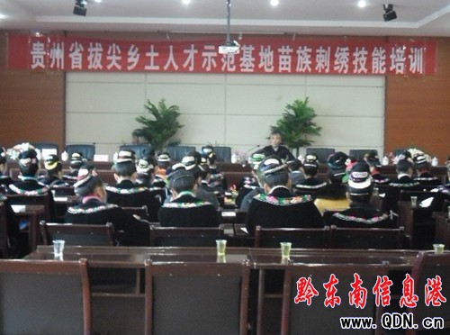 2011年12月8日,貴州省拔尖鄉土人才示范基地雷山苗族刺繡技能培訓在雷山縣圣城家園酒店六樓會議室開班,來自全縣從事苗繡制作的苗族婦女80余人參加了培訓。