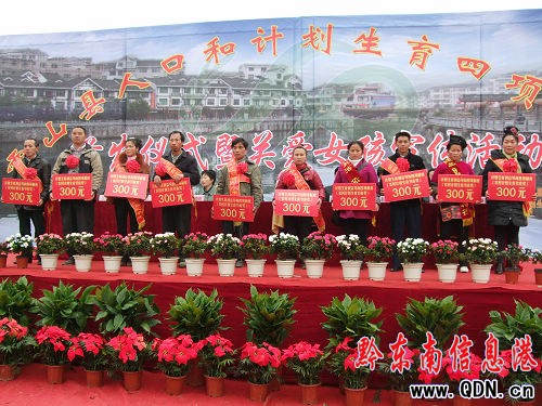 為加大人口和計劃生育宣傳教育力度,切實為實現“雙降”目標營造濃厚的社會宣傳輿論環境,3月8日下午,中共雷山縣委、縣人民政府在縣城木鼓民族文化廣場舉行人口和計劃生育“獎勵、保障、求助、優惠”四項制度獎勵金首發儀式暨關愛女孩宣傳活動,為該縣38戶“少生快富”家庭每戶發放獎勵金6000元;為500戶農村計劃生育家庭發放節育獎每戶300元,兩項共計發放37.8萬元。縣委副書記楊少輝、縣人民政府副縣長張曉玲、縣人大常委會副主任劉平方、縣政協副主席侯建群等四大班子分管和聯系人口計生工作的領導及州人口計生委宣傳教育科科長周映霞為此次獲獎的計劃生育家庭頒發了獎金。圖為計劃生育家庭領取獎勵金的場面。(張希才 文玉榮)
