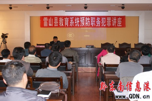 該縣人民檢察院檢察長郭蘇斌作了預防職務犯罪專題講座,講座以“檢教協(xié)作”為平臺,堅持預防為主的方針,從教育系統(tǒng)職務犯罪案件產生的原因、特點及發(fā)展趨勢和如何預防教育系統(tǒng)職務犯罪進行了詳細的講解。講座結合州內近年來的教育系統(tǒng)職務犯罪案例,就教育系統(tǒng)干部如何保持廉潔自律,提出了四點要求:一是要加強教育,不斷提高教育工作者的思想政治素質,二是要完善管理制度,建立有效的工作機制,三是要強化監(jiān)督,增加教育行政工作的透明度,四是要加大查處力度,嚴厲打擊職務犯罪活動。(何明媛 張希才)