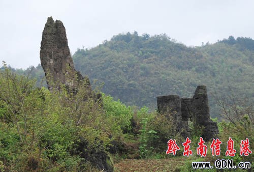 凱里市大風洞鄉下寨村境內有一片石林,石林中有一塊張著“大嘴巴”,聳立在懸崖上的奇石,遠觀極像是一只正在出水頂球的海獅(如圖),造型十分獨特。