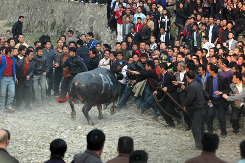 有關(guān)人士提醒說,民間觀斗牛比賽,一定要選擇在高處或者安全地段觀看,切不可在賽場邊圍攏近觀,以防斗牛“急眼”,狂奔亂撞傷及看看客。斗牛比賽是我省民間廣泛開展又喜聞樂見的一項民族傳統(tǒng)體育活動,有關(guān)部門應(yīng)對斗牛比賽事加強(qiáng)安全管理,強(qiáng)化安全意識,防止悲劇上演。