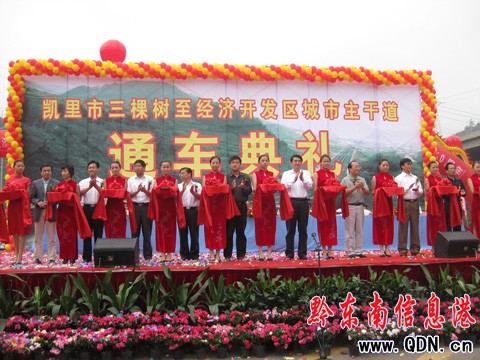 州委書記廖少華宣布三棵樹至經濟開發區城市主干道暨凱里直雷山二級公路仰阿沙廣場直三棵樹段正式通車。