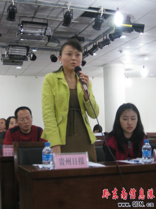 圖為《貴州日報》記者在會上提問