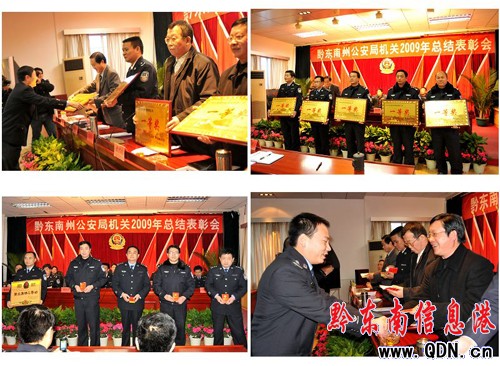 本港訊 (張柯爾 記者 周亮 攝影報道)日前,州公安局機關(guān)隆重召開2009年度總結(jié)表彰會,州人大常委會副主任歐陽武,州政協(xié)副主席黃明光,州公安局黨委書記、局長溫貴欽等出席并頒獎。