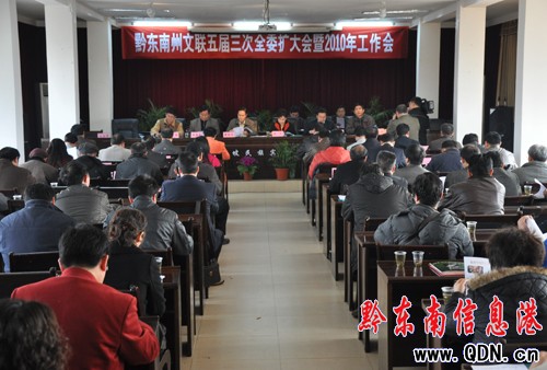 本港訊 (記者 楊驥 攝影報道)3月12日,黔東南州文聯第五屆第三次全委擴大會暨2010工作會在凱里召開,中共黔東南州委副書記韓卉、州委常委、州委宣傳部長耿生茂、州政協副主席黃明光等領導出席了會議。