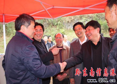 4月4日下午,州委廖少華書記率州、市領導到達丹寨縣“引水入城”工地,看到水泵正常啟機時非常滿意。在通水儀式上,他對參戰官兵及 自來水公司發揚特別能吃苦、特別能忍耐、特別能戰斗的革命精神給予充分的肯定。當他走進丹寨縣自來水公司看到水源充足機泵運行正常、 走進市民家中看到水龍頭流出自來水時,露出了欣慰的微笑。