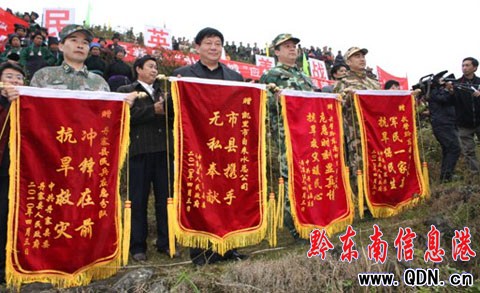 (丹寨縣委、縣政府向凱里市自來水公司及參戰部隊贈送錦旗)
